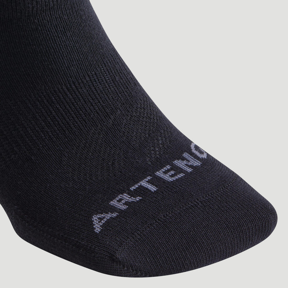 These Artengo low-cut tennis socks have an ankle tab just over the heel to increase your comfort by stopping the sock sliding around in the shoe, and to keep blisters at bay. This is what we call the "edge" system.When worn with tennis shoes, the tab is almost invisible.