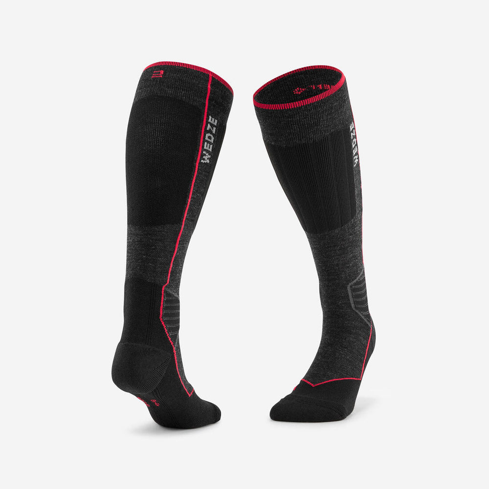 The sock is designed so that the foot becomes one with the ski boot to avoid any discomfort. All seams are positioned so that they never sit on a pressure point.