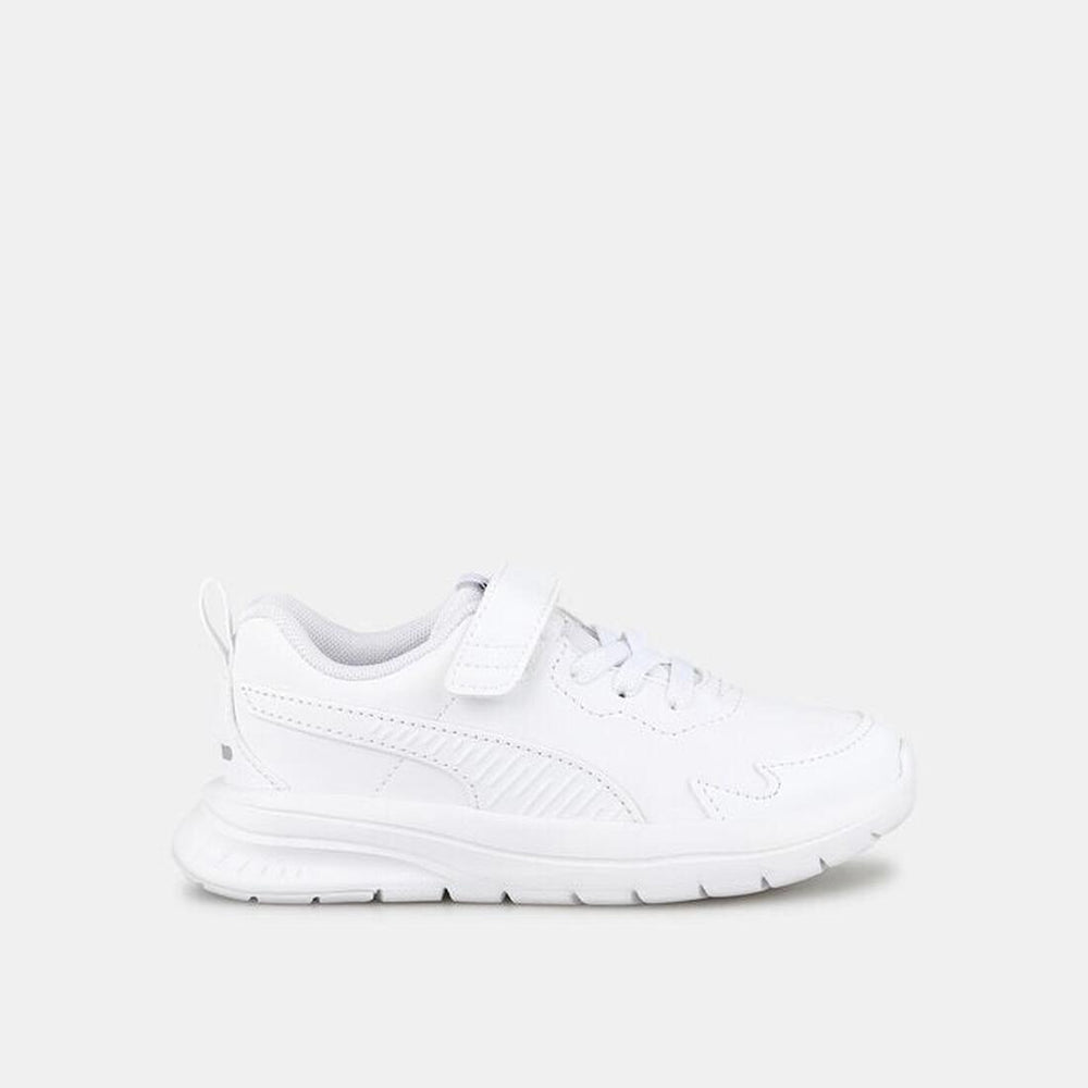 The upper is adorned with hotmelt overlays and debossed lines that are understated in appearance. There's also a hook-and-loop closure at the top to take the shoes on and off with ease. A styled PUMA Formstrip completes the look.