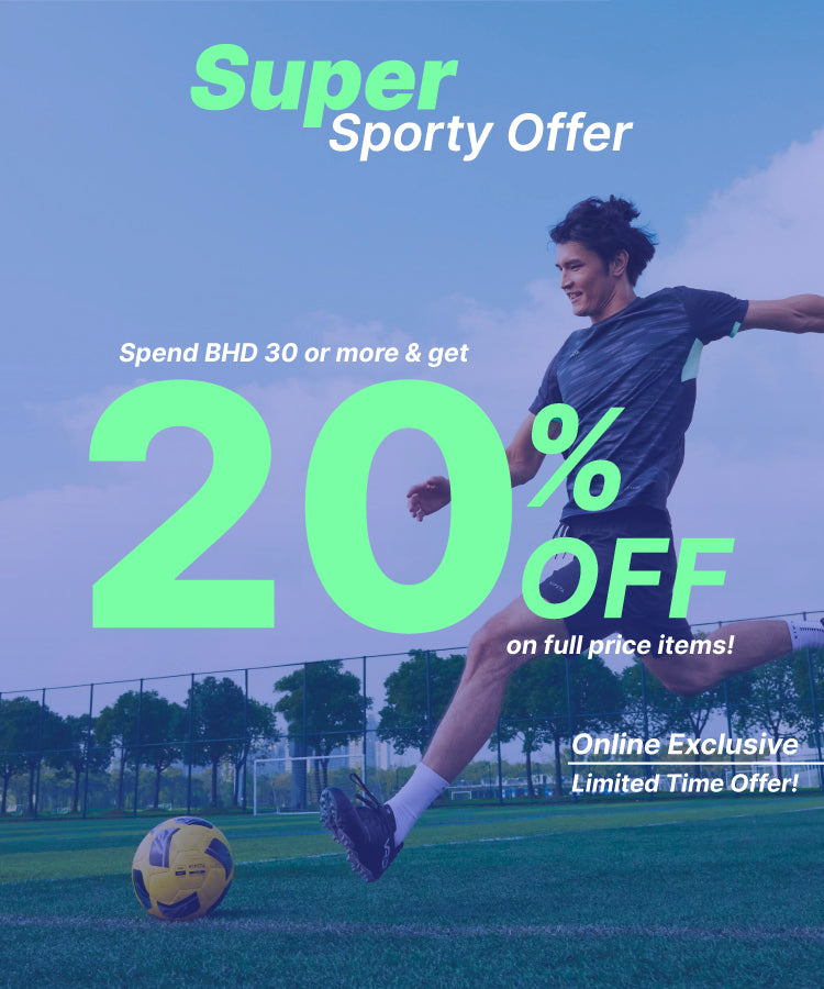 Super Sporty Offer – Spend & Save!! Enjoy 20% off when you spend BHD 30 or more on full-price items | Discount applied at checkout.