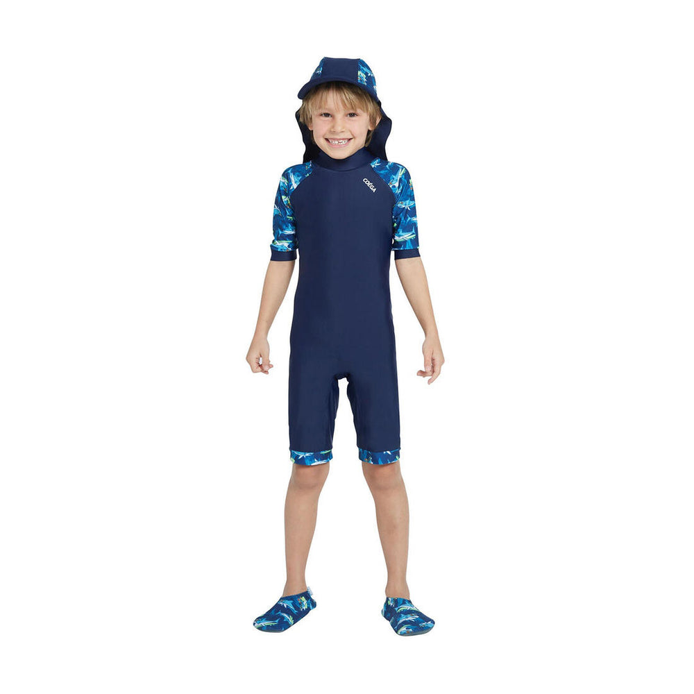This convenient and unique one-piece design provides comfort and freedom of movement during active water play. The chlorine and saltwater resistant fabric retains its shape and dries quickly all while providing much needed UV50 protection. Go Ahead, Love the Sun!